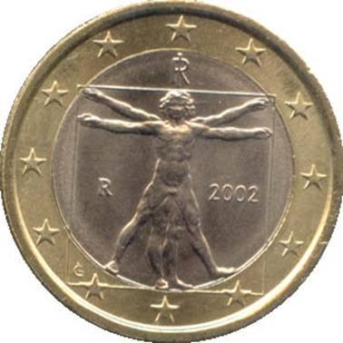 L'uomo vitruviano è stato scelto da Carlo Azeglio Ciampi, all'epoca Ministro dell'Economia, per comparire sulle monete da 1 euro italiane, con significato altamente simbolico (l'uomo come misura di tutte le cose).Giulia