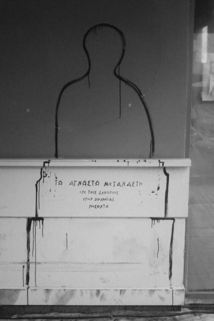 ...o come la tomba al migrante sconosciuto, che fa il verso ai monumeti al milite ignoto.